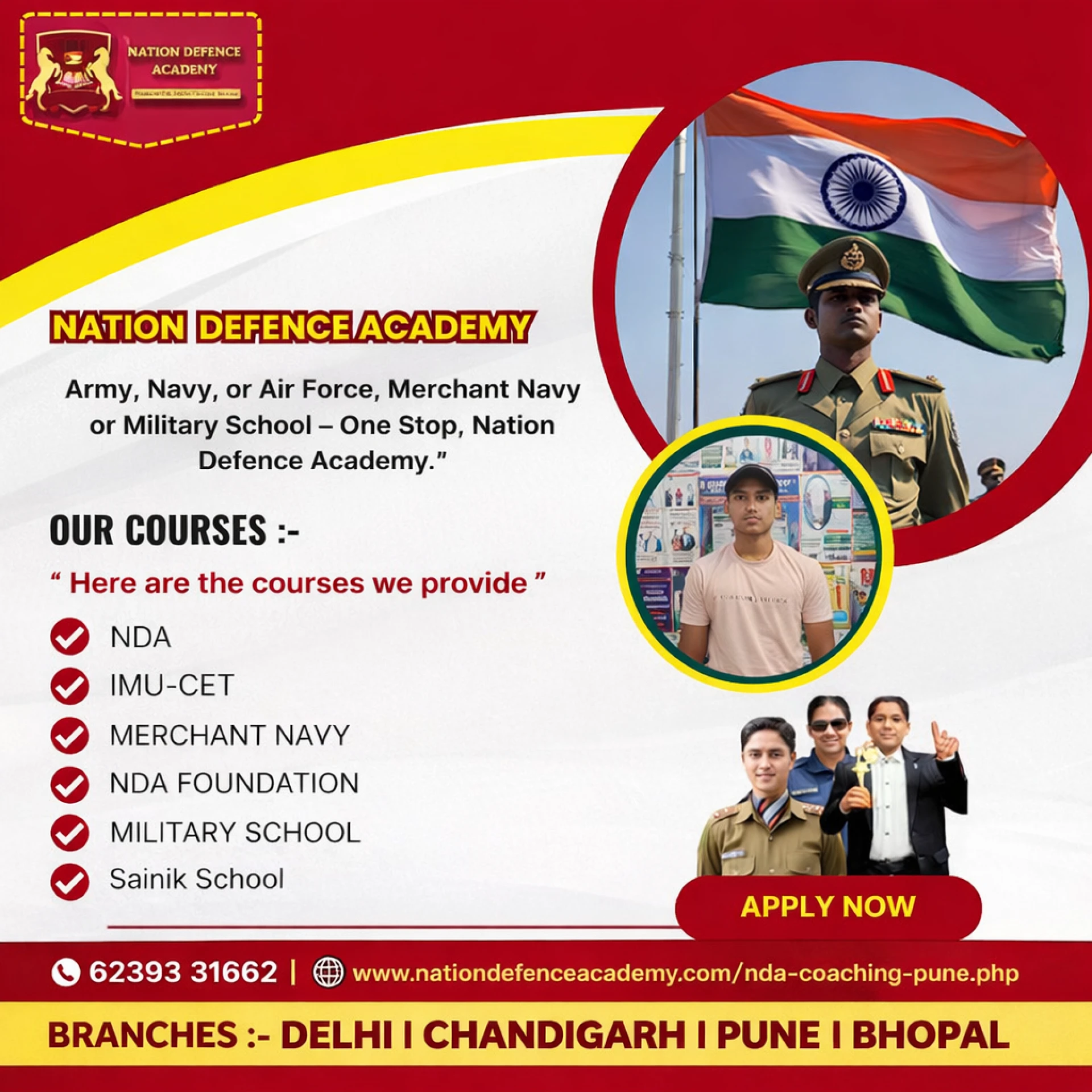 A1. The academy offers an NDA 2 Year Coaching Program in Pune for early starters and an NDA 1 Year Coaching Program in Pune for intensive preparation, along with short-term crash courses.