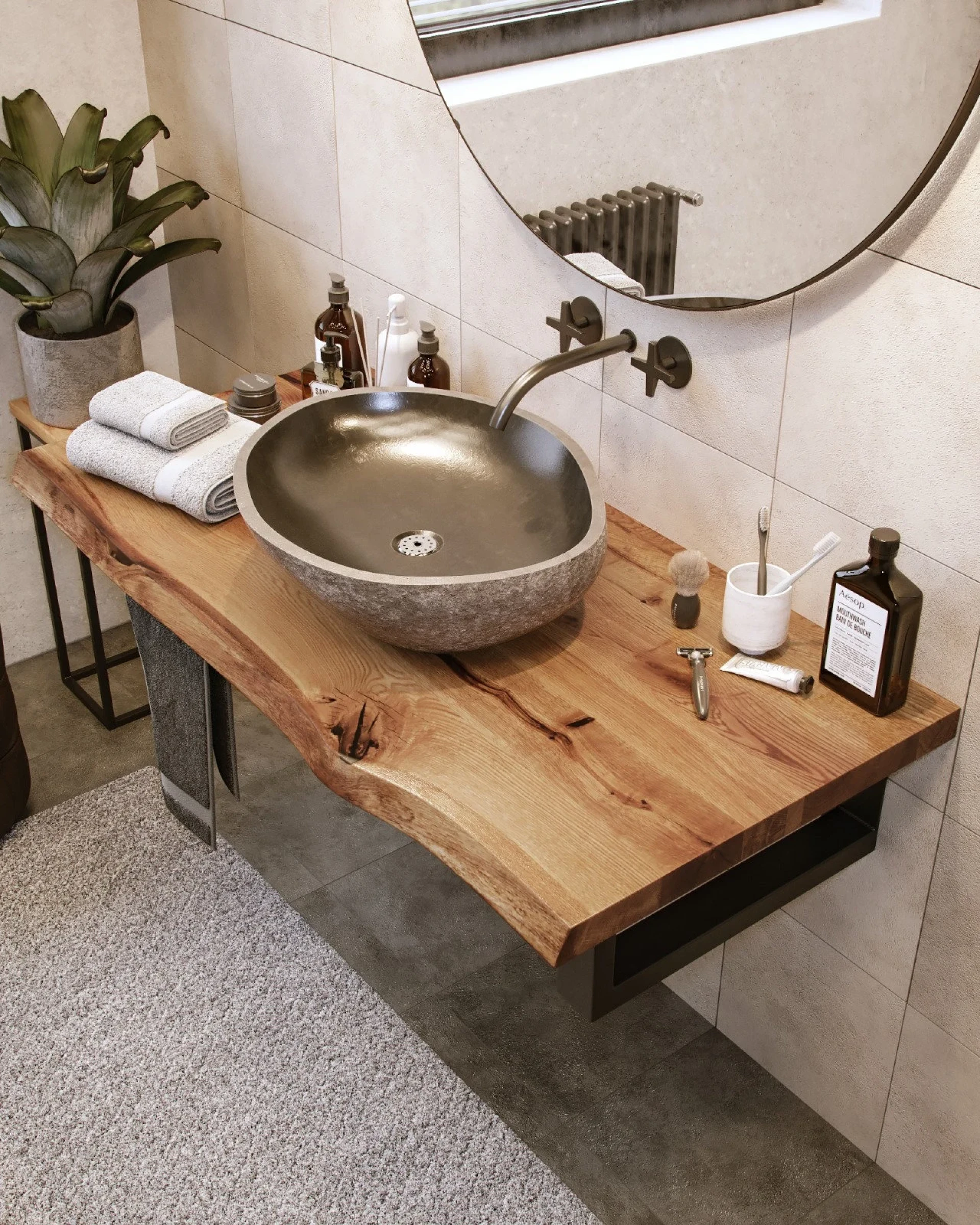 Supported by legs or brackets, console basins combine openness with elegance and are popular in classic or transitional bathrooms.