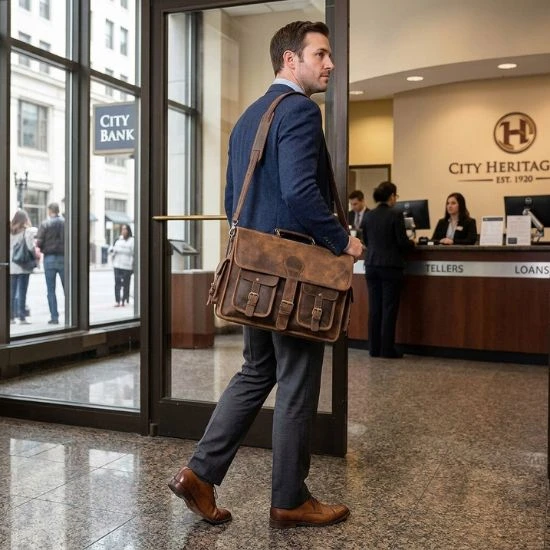 A leather messenger bag works effortlessly with smart casual looks. Think chinos, a crisp shirt, and loafers. This combination gives a balanced appearance that is neither too formal nor too relaxed.