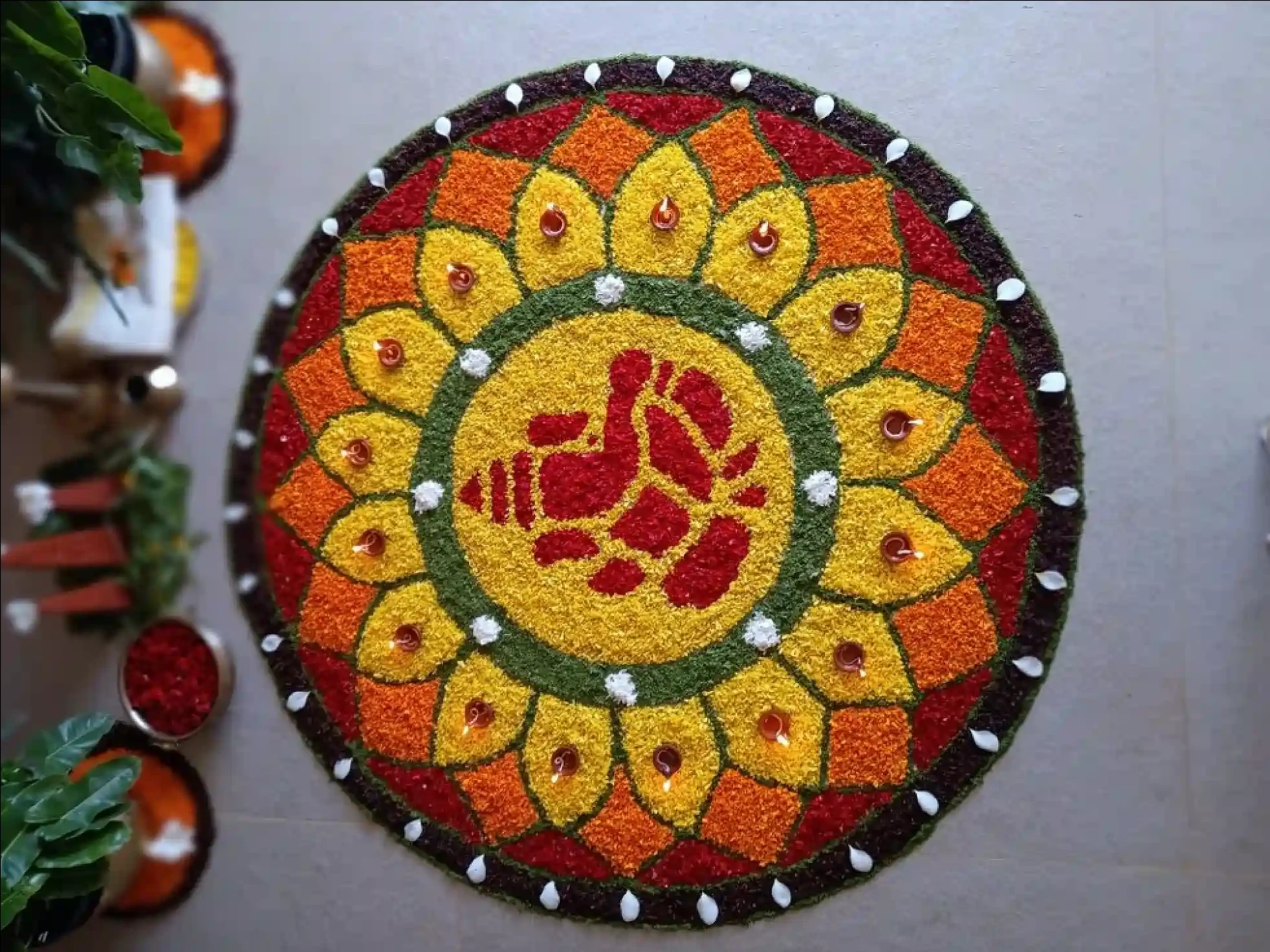Traditional rangoli designs made with colored powder are lovely, but this year, try something new! Use fresh flower petals, leaves, and candles to create a natural rangoli that looks (and smells) divine.