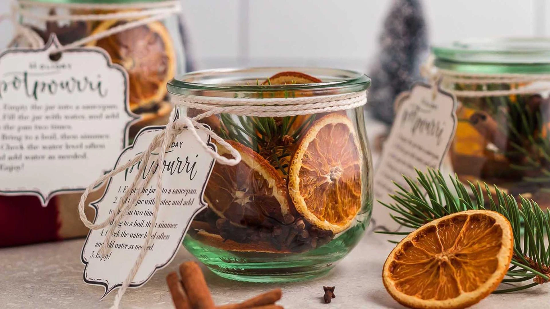 Fill your home with festive fragrance by making your own potpourri. Mix dried flower petals, cinnamon sticks, cloves, and essential oils in a bowl or jar.