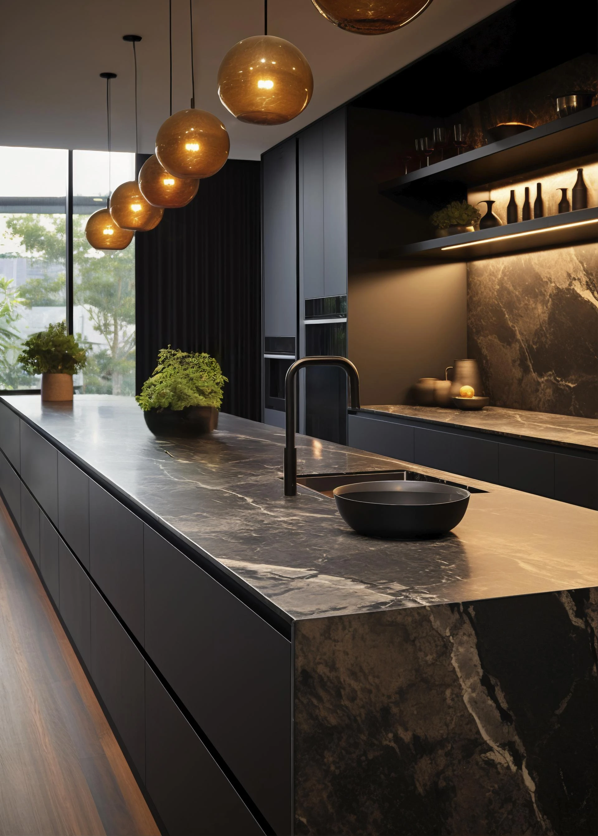 These large-format tiles created a seamless look, enhancing the room’s spacious feel. The matte finish and subtle texture gave the kitchen an urban edge while remaining easy to clean and highly durable. Paired with matte black cabinets and pendant lighting, the finished makeover was bold, functional, and perfect for modern family life.
