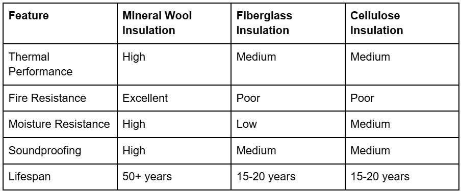 This comparison highlights why mineral wool is increasingly chosen for modern homes seeking performance, safety, and longevity.