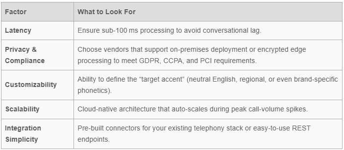 - Select a Vendor – Prioritize low latency, strong security, and proven integration with your existing telephony stack.