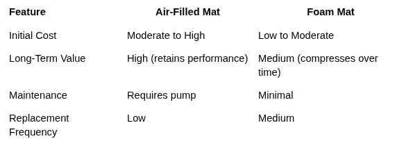 Winner: Air-filled mats for advanced tumbling; foam mats for beginner cushioning.