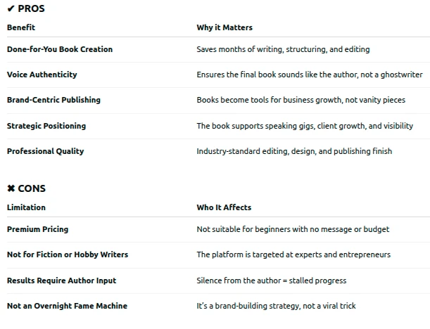 The truth is more nuanced. The platform represents a new category — not just a publishing company, but a purpose-oriented ecosystem designed to turn experts into recognized authors without them spending years struggling to write.