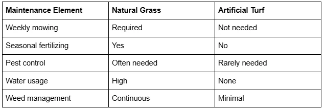 Artificial turf installation comes with upfront costs, but it eliminates recurring maintenance expenses and saves dozens of labor hours each year.