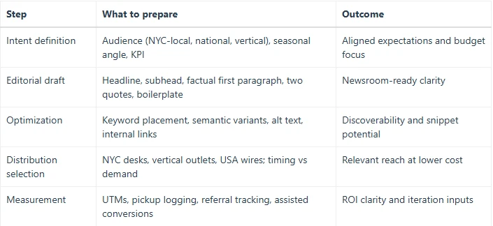 The lesson is simple: meet editors where they already are—seasonal angles, civic impact, and beat-specific detail. If you need to test momentum quickly, lock a lean budget press release bundle and validate pickups across NYC desks and your primary trade outlets before scaling cadence.