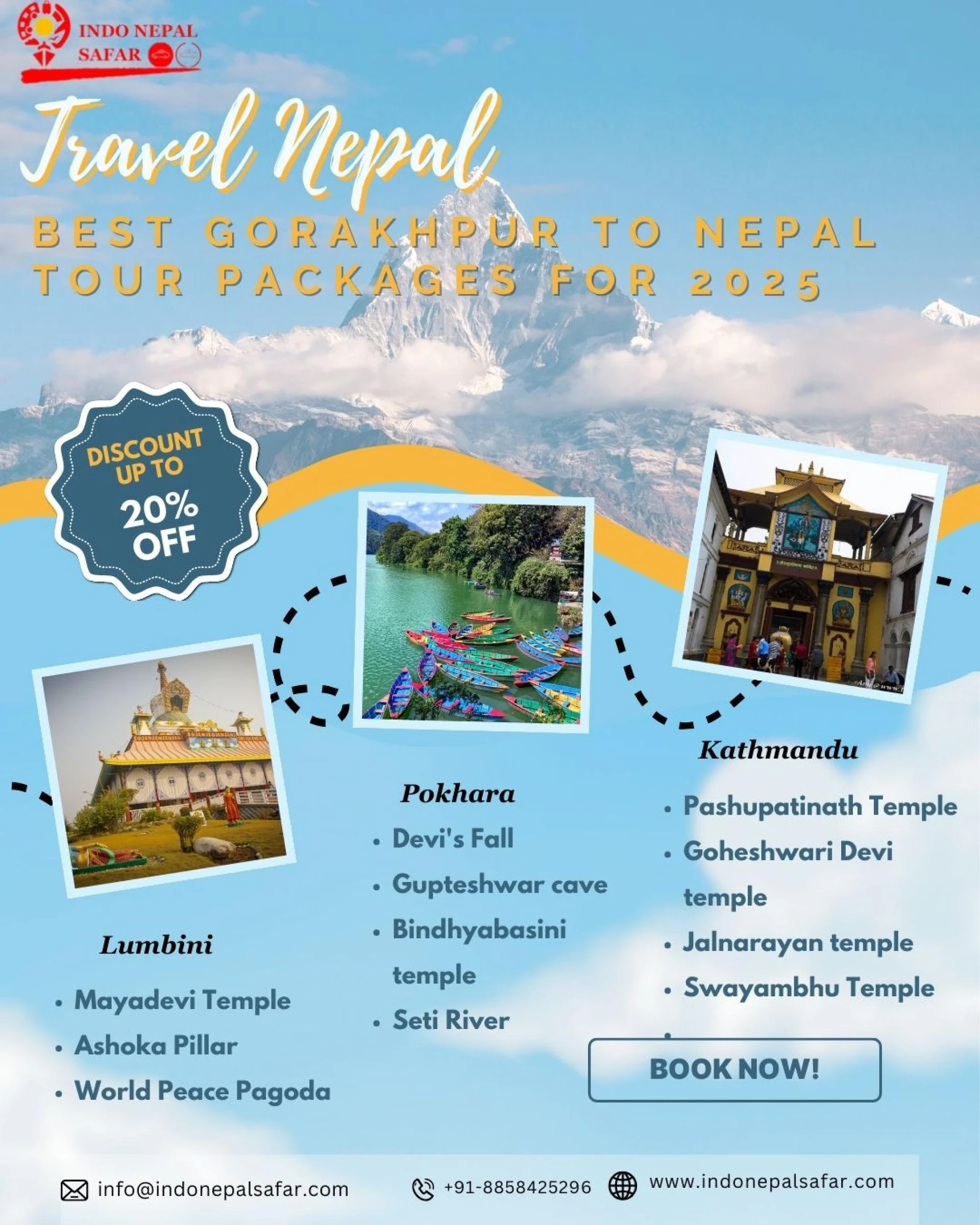 Are you ready to embark on a remarkable journey in 2025? The Best Gorakhpur to Nepal Tour Packages for 2025 provides an extraordinary chance to explore the breathtaking beauty, vibrant culture, and spiritual tranquillity of Nepal. Just a short distance from Gorakhpur, Nepal is the perfect destination for travellers eager to experience stunning landscapes, rich history, and exhilarating adventure activities. Whether you're a nature lover, history enthusiast, or adventure seeker, Nepal has something unique for you, and these top tour packages from Gorakhpur will help you make the most of your trip.