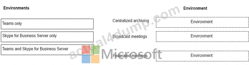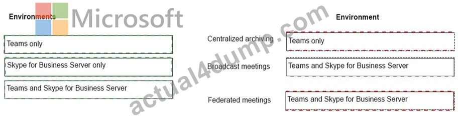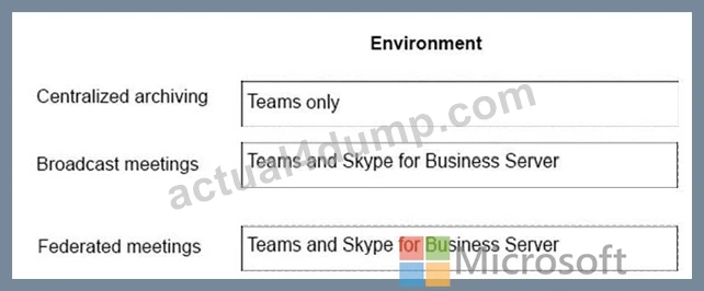 A company plans to deploy collaboration tools for employees. The company does not plan to deploy a hybrid environment. You need to identify the features that are available in Teams and Skype for Business Server.