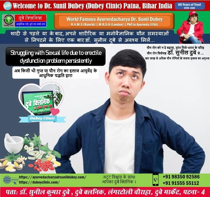 Whether you are young, middle-aged, or elderly and experiencing erectile dysfunction problem in your sexual life, this information is for you. In this session, our world-renowned Ayurvedacharya, Dr. Sunil Dubey, one of the best sexologists in Patna, Bihar, provides comprehensive information about erectile dysfunction, explaining whether it is normal or abnormal. In cases of normal erectile dysfunction, the patient does not need to worry, while abnormal or persistent problems with erections are a cause for concern. He practices daily at Dubey Clinic and treats all cases of sexual dysfunction in individuals and couples using a holistic approach to treatment.