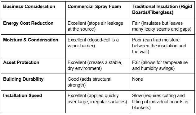 An efficient building must do more than just maintain temperature; it must provide a stable and safe environment for the assets inside, whether that's inventory, equipment, or employees. Moisture is a constant threat in many commercial settings, and spray foam provides an exceptional solution.