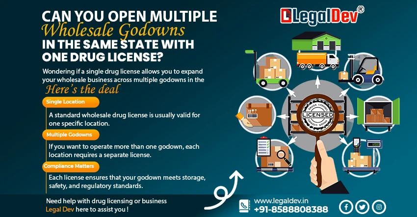 India's pharmaceutical industry is among the most regulated industry, requiring rigorous compliance with legally prescribed frameworks for ensuring the safety and efficacy of drugs. One of the basic requirements for an individual who intends to carry on the wholesale distribution of drugs is to obtain a drug license. Many business owners ask: "Can I have more than one wholesale godown in the same state, in India under the same Drug license? In India. This question is important for business people who wish to expand their business while remaining legal. This article will discuss the relevant legal provisions, regulatory directions, and practical considerations regarding engaging in multiple wholesale godowns, under the same drug license in India, it will also provide procedures for applying for drug licenses and access to a good professionally run drug licensed registration service for compliance without hassle.
