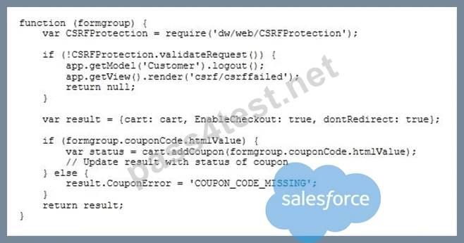 Universal Containers recently completed updates to their storefront shopping cart page. A problem has been discovered since the update. Users are no longer able to submit coupon codes on this page. Additionally, authenticated users who try to add a coupon are logged out.