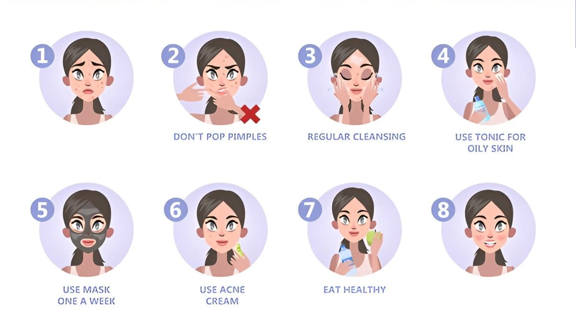 Acne can appear on the face or around the hairline if your hair is oily or if you use hair products. Make sure you wash your face twice a day and keep it away from your face. Pull your hair back and wash your face to prevent clogged pores.