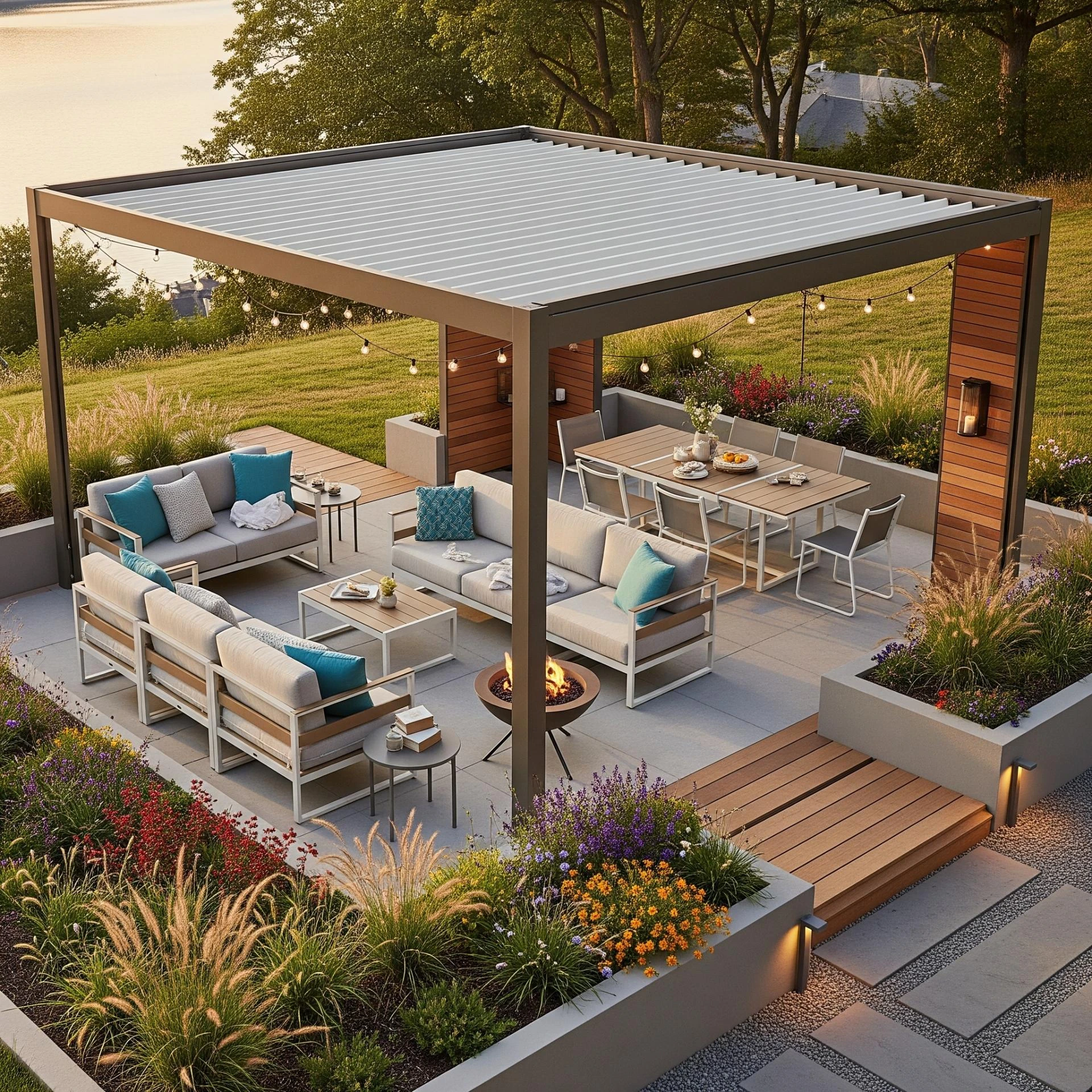 The key to creating a convertible outdoor space is intentional design. Think about how each element can serve more than one purpose: