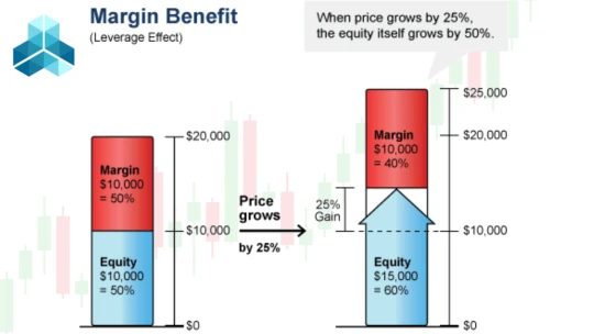 Assume you have $10,000 in your trading account, and your broker permits you to borrow up to 50% of that amount, or $5,000 in the margin. The value of your trading account rises to $15,000 as a result. You could get $150 if your purchased shares grow 10%. Conversely, if they fall 10%, you’ll lose $150, or $50 more than if you hadn’t borrowed anything at all.