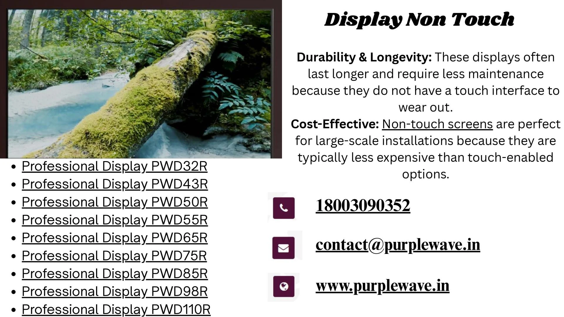 Non Touch Display are widely used in corporate offices, retail stores, airports, hospitals, educational institutions, hotels and public spaces. They are perfect for areas where information must be easily visible without user interaction.