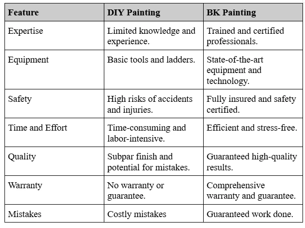 - Whereas hiring a professional painter like BK Painting is the smart choice. Our team of experts has the training, experience, and equipment to deliver high-quality results, ensuring a seamless and stress-free experience.