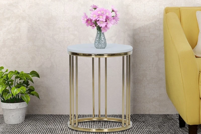 With its polished marble top and gold-accented legs, this marble bedside table adds elegance and versatility. You can use it as a side table next to your sofa or as a chic perch for a table lamp in your hallway.
