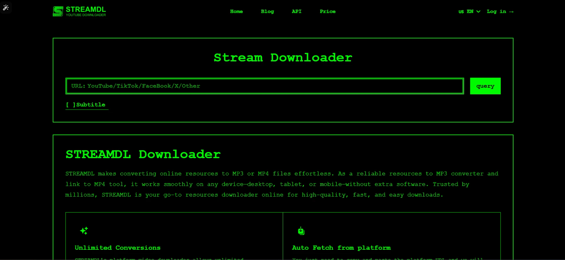 Are you still worried about not being able to find a good YouTube video download tool? Want to save your favorite videos offline but don't know how to do it? Don't worry, StreamDL is here to help you solve this problem! This is a completely free YouTube video download platform with simple operation and powerful functions, allowing you to easily download your favorite videos and watch them anytime, anywhere!