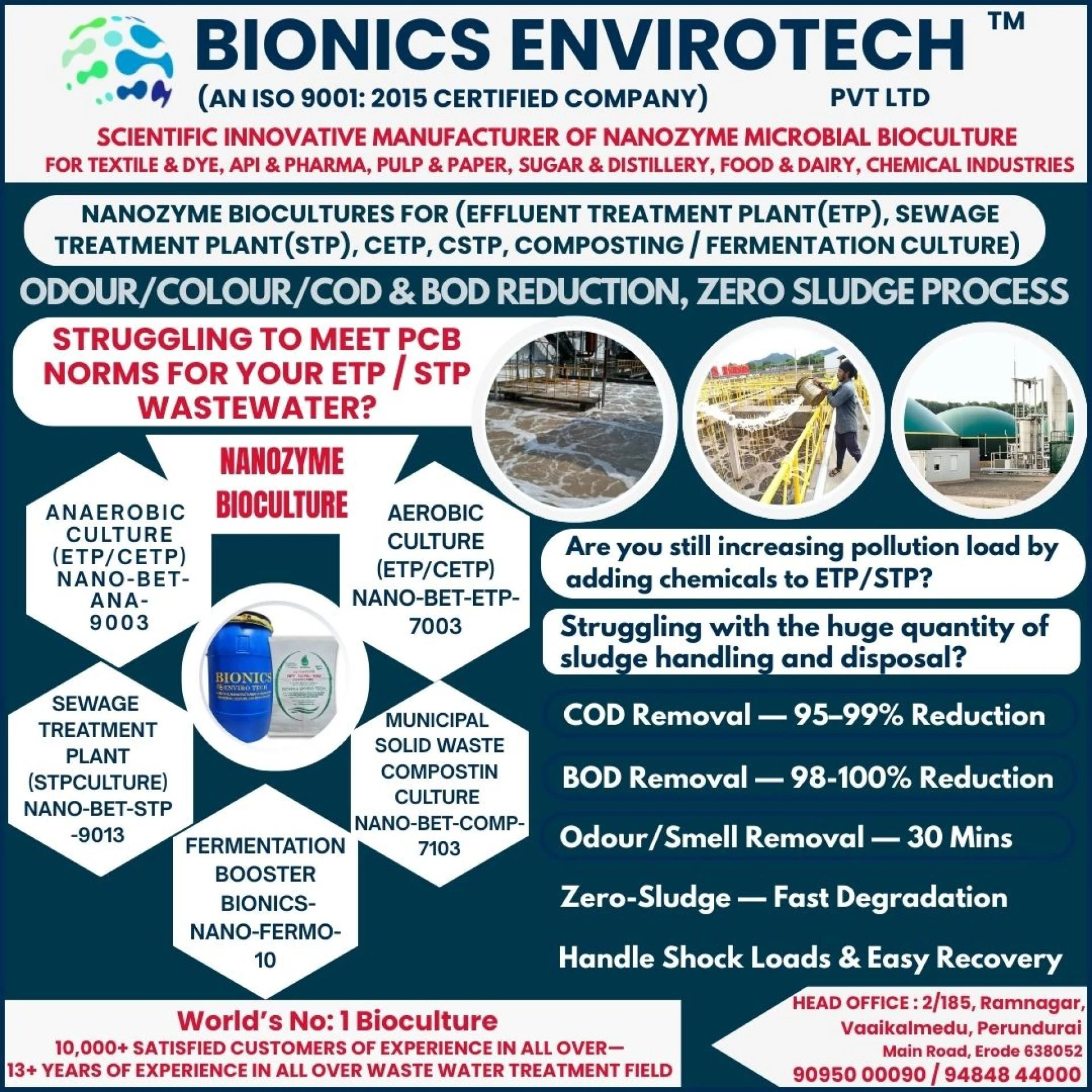 Improved COD and BOD reduction efficiency, Lower sludge handling and disposal costs, Reduced chemical consumption, Faster system stabilisation, Eco-friendly and sustainable operation, Enhanced regulatory compliance, Optimised plant efficiency and improved ROI These advantages position Nanozyme biocultures as a strategic investment, not just an operational add-on.
