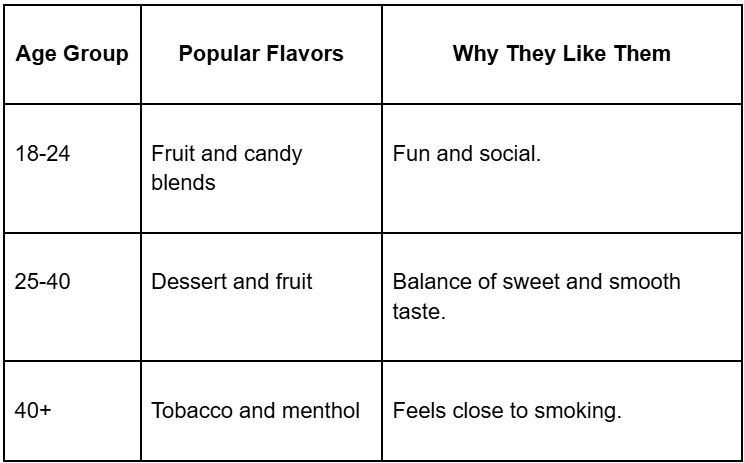 Flavor is not a small thing. It changes the whole vaping experience. A study in 2023 showed 87.6% of adults prefer flavored vapes. In Texas, fruity blends and sweet dessert tastes are very popular. Flavors also help smokers switch. Many say a flavor like berry or vanilla made it easier to stop smoking cigarettes.