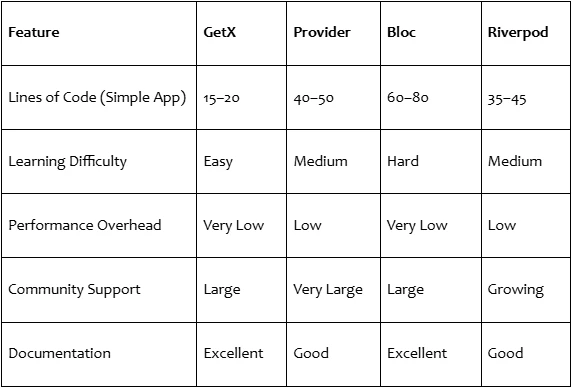 These features put GetX ahead as a strong option for teams aiming to build scalable Flutter applications.