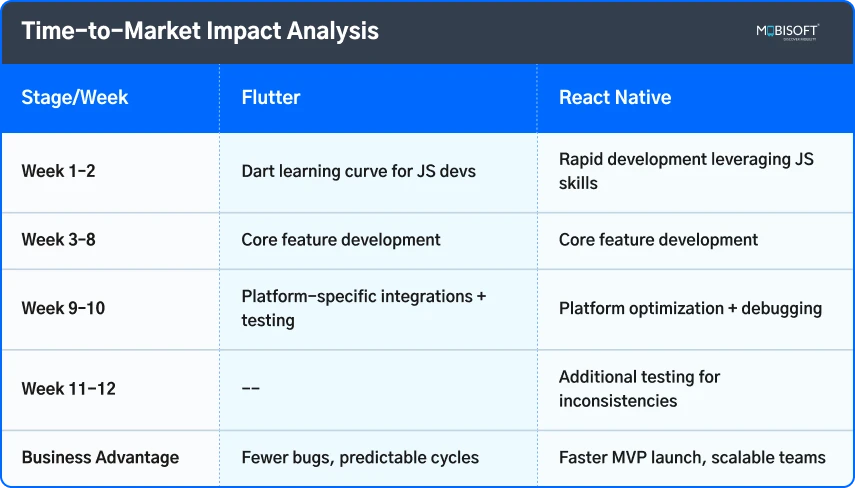 - Hidden Cost: Flutter requires Dart expertise; React Native leverages existing web developers
