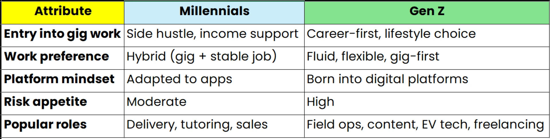 🔹 Gen Z: Gig work as lifestyle choice