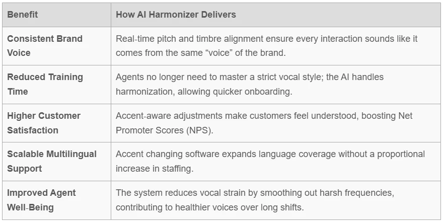 Modern AI harmonizers change the game by applying machine‑learning models directly to the live audio stream. These models analyze an agent’s speech in milliseconds, then adjust pitch, timbre, and resonance to match a predefined brand voice. The result is a uniform, soothing sound that feels both personal and polished—without forcing agents to “speak like a robot.”