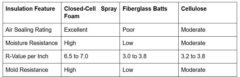 Choosing the right material for a crawl space depends on its ability to block air movement and resist moisture. While fiberglass is a common choice, it lacks the air-sealing properties necessary to stop high-speed drafts. The following data highlights why foam remains the preferred choice for professional contractors.