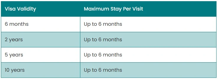 Even if your visa is valid for longer (for example, 2 years or 5 years), each visit cannot exceed 6 months.