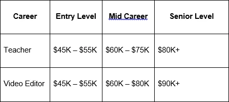 So here’s the deal. Teaching offers steady growth. Video editing may bring higher pay at the top.