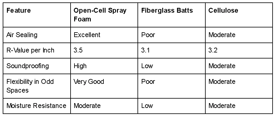 - Climate Factors: Open-cell foam performs best in moderate climates but can be paired with other solutions for extreme heat or cold.