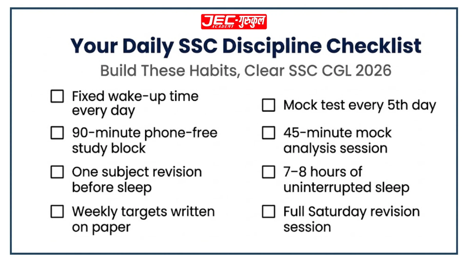 SSC CGL 2026 will not ask how motivated you were in January. It will only reward how consistently you practiced when others gave up. Stop waiting for the perfect day and start with one habit today — kal se nahi, aaj se.