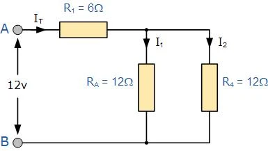 The method of calculating the total current (IT) obtained by the 12v power supply in the circuit is as follows: