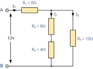 Through careful observation, we can see two resistors. R 2 and R 3 are combined. The addition of R 2 and R 3 produces the same resistance. The combined resistance of this combination is: R 2 + R 3 =8Ω+4Ω=12Ω. We can replace R 2 and R 3 with 12Ω.