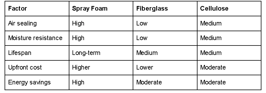 Spray foam often saves the most because it seals air leaks while insulating.