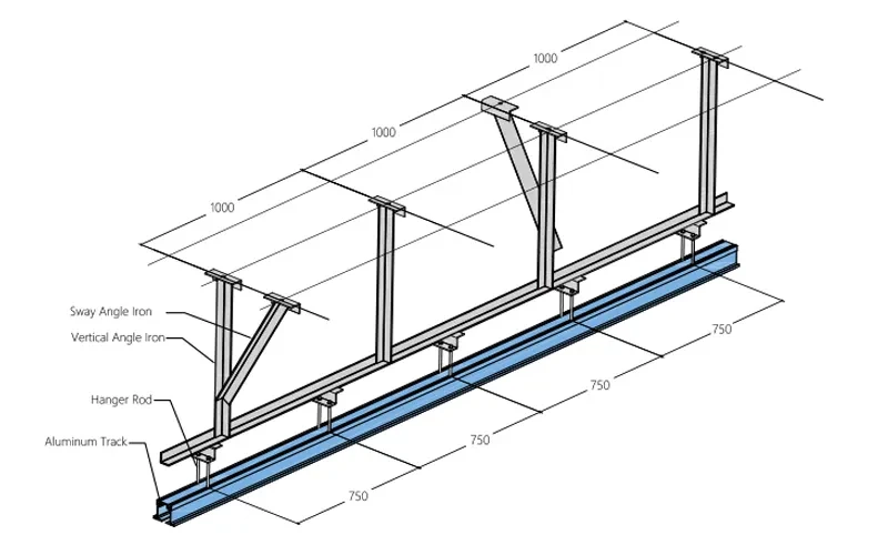 Fixed the aluminum track on the steel structure by Z bracket and rod screws.