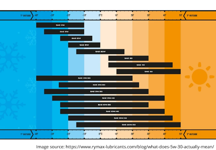 Multigrade oils such as SAE 5W-30 and 10W-40 are widely used because, under all but extremely hot or cold conditions, they are thin enough to flow at low temperatures and thick enough to perform satisfactorily at high temperatures. In other words, the choice of viscosity would be different depending on the climate conditions of the operational site.