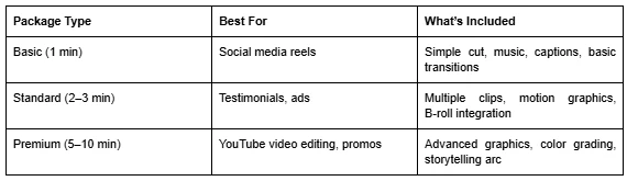 When pricing out editors or video editing packages, here’s what you’ll typically find: