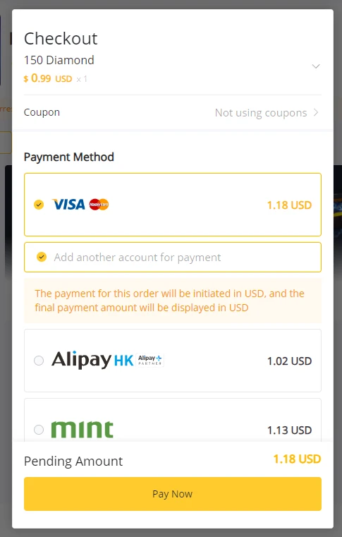 Choose the right payment method, payment methods may vary from region to region, LootBar supports most major payment methods.