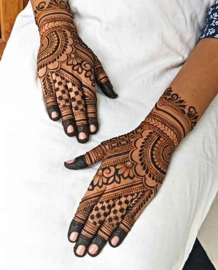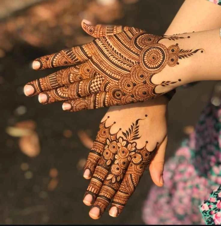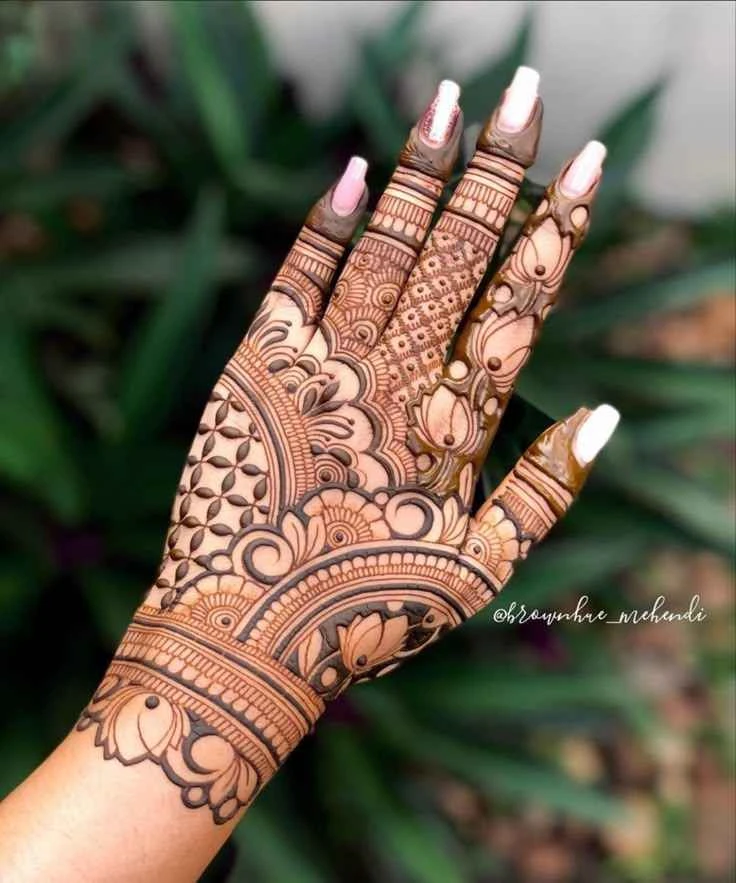 Centered around the middle of the hand, mandala patterns are symbolic, symmetrical, and stunning. These designs blend spiritual depth with visual harmony, making them a go-to for minimalist brides and trend-conscious individuals.