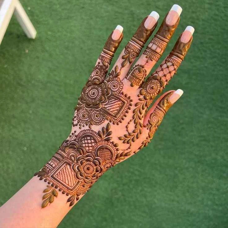 While full-hand and palm mehndi designs continue to be popular, Stylish Back Hand Mehndi Designs are now leading the trend charts. The back of the hand offers a unique surface that allows for more visual freedom, resulting in bold and contemporary interpretations of traditional patterns.