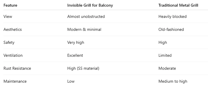 Invisible Grill vs Traditional Balcony Grills