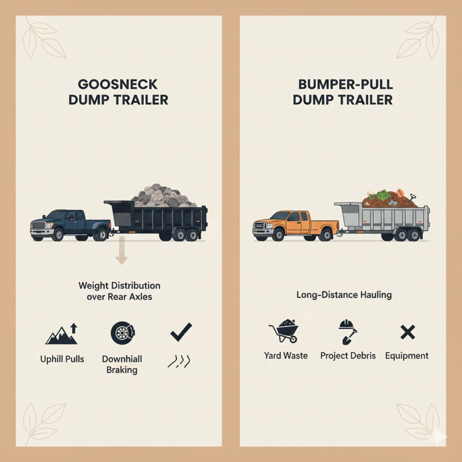 A gooseneck dump trailer stands out for those who move heavy loads regularly, work across challenging ground, or want the most stable towing experience. Its attachment point, weight balance, and higher capacity give it an edge for demanding conditions. A bumper-pull trailer suits users who prioritize versatility, affordability, and simpler vehicle matching. The right choice depends on work volume, towing comfort, and long-term plans for material transport.