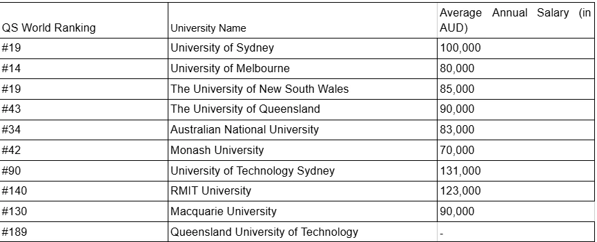 The average salary of MS graduates in Australia is 55,00 AUD to 80,00 AUD. The cost of pursuing an MS degree is 80 lakh to 90 lakh, which means students will get a higher return on investment. International students on Student Visa Subclass 500 can work up to 20 hours per week while studying in Australia.