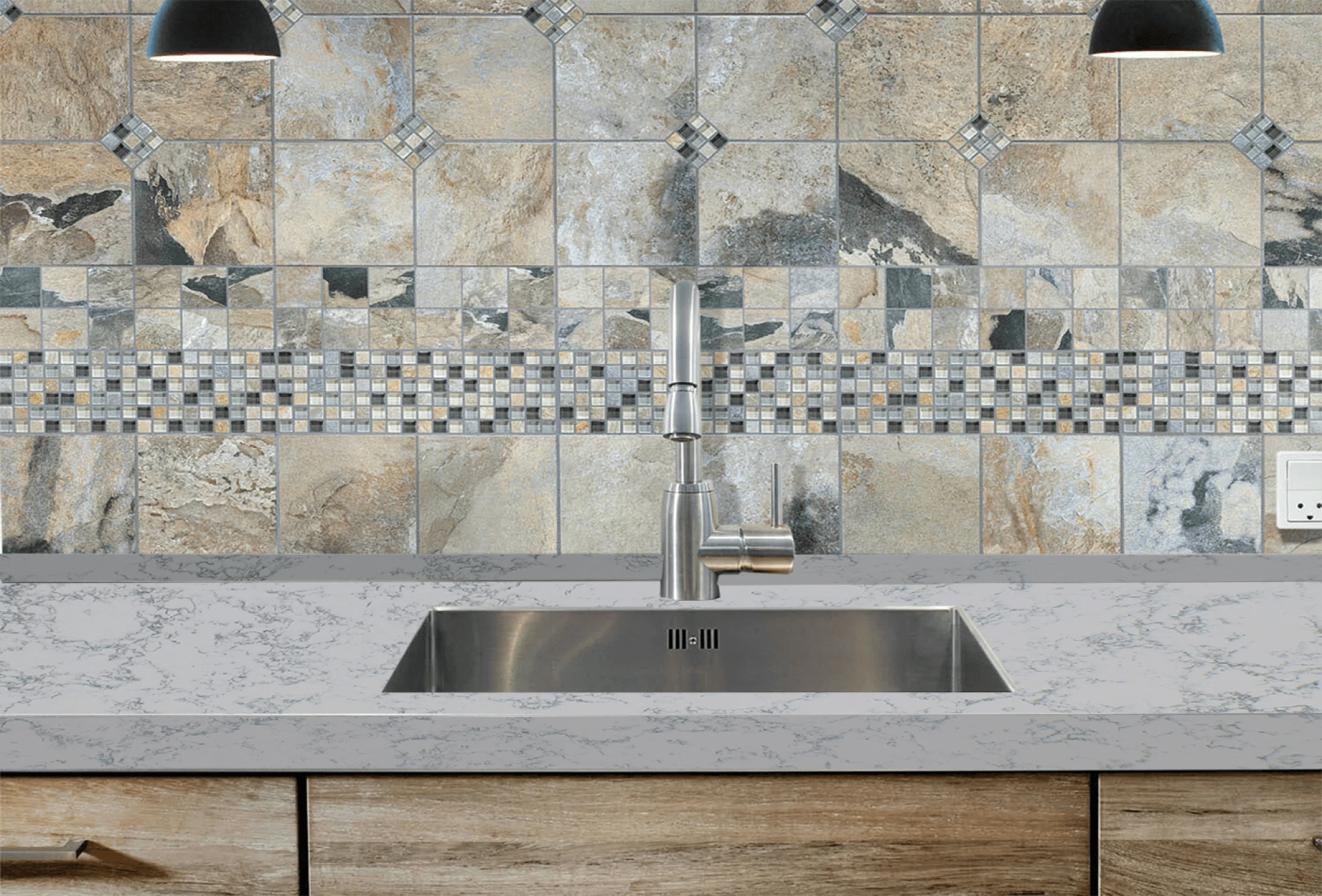 Make your design more attractive by combining different materials, like stone mosaics and glass tiles. If you\'d like to add some dimension to your design, consider using "metal stix" mosaics, which are linear pieces of tile attached, or playing with shades of cement tile. One more method for stirring things up is introducing a backsplash with various sizes of the equivalent material. You\'ll be astounded by what a smidgen of assortment will accomplish for the plan. If you wanted to have natural stone for your backsplash to match your worktops, we would.