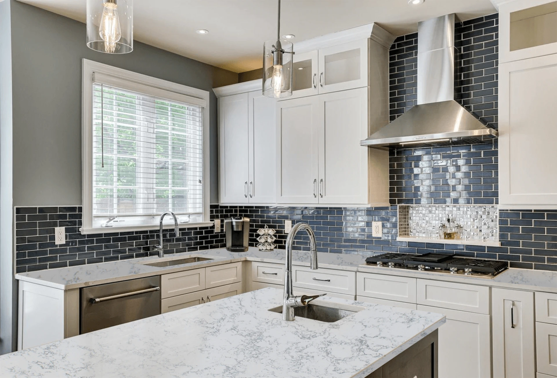 The backsplash can often be overlooked when creating modern kitchen design inspiration. You probably plan out countertops, appliances, and kitchen cabinetry well in advance, but many homeowners forget about backsplashes. Kitchen backsplashes are mostly practical tools used to prevent your walls from getting dirty, but they can also create an aesthetic backdrop and a focal point in your kitchen, depending on how they are designed. Although every kitchen design is unique to the homeowner\'s vision, there are several easy design tips you can follow to keep the room from looking cluttered, clinical, or simply not in style. In addition to choosing a timeless backsplash, if you are planning on selling your house in the future and renovating your kitchen, choose a colour scheme that won\'t go out of style anytime soon.